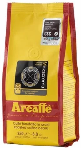Arcaffè Mokacrema is an espresso blend that consists of 100 % Arabica beans from high altitude estates in Central America and Ethiopia. This delicate and aromatic coffee has a nice acidity and a sweet honeylike aftertaste. It is an excellent espresso that also works nicely with milk in cappuccinos and lattes.