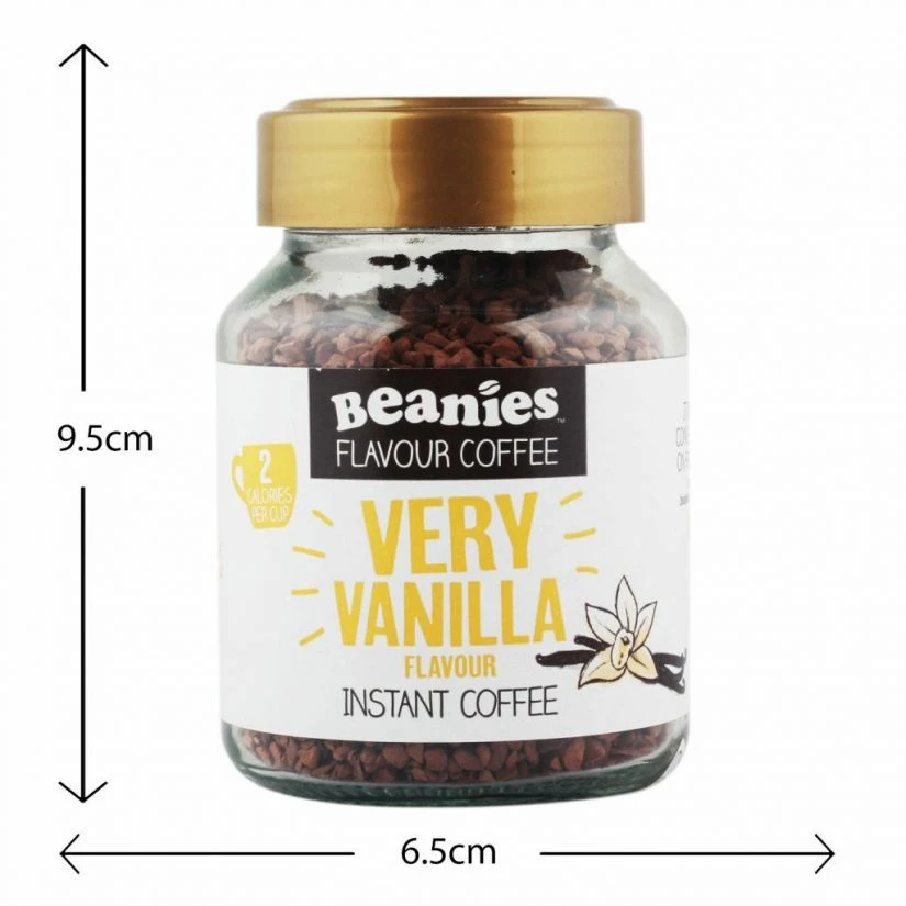 Beanies Very Vanilla flavoured instant coffee with a classic creamy flavour. Also try serving it over ice or why not pour it over ice cream, a perfect combo!