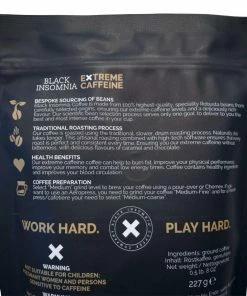 Black Insomnia Classic is the original tasting coffee. It’s a medium roast that’s light and refreshing. No acidity or bitterness. Packed with a smooth tasting extreme caffeine kick.