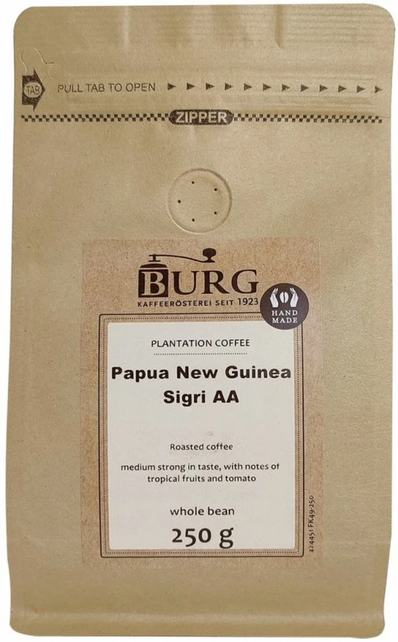 Burg Papua New Guinea coffee has a sweet, smooth taste and a fullness with notes of spice and tomato.