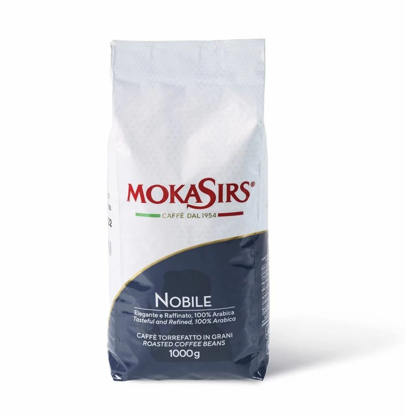 Nobile is the finest of MokaSirs espresso blends, a perfect synthesis of elegance and refinement. This sweet 100 % Arabica coffee has hints of cocoa, and the medium acidity and fruitiness balance the sweetness well. The coffee is delicious, pleasant and balanced. The long aftertaste has notes of chocolate.