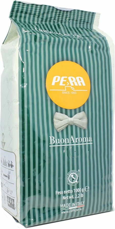 Pera Buon Aroma coffee beans – an Italian quality blend of selected Brazilian Arabica (65 %) and Vietnamese Robusta (35 %).
