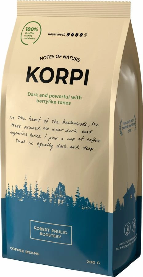 Robert Paulig KORPI Notes of Nature is a dark, strong and yet balanced coffee with light berry nuances.