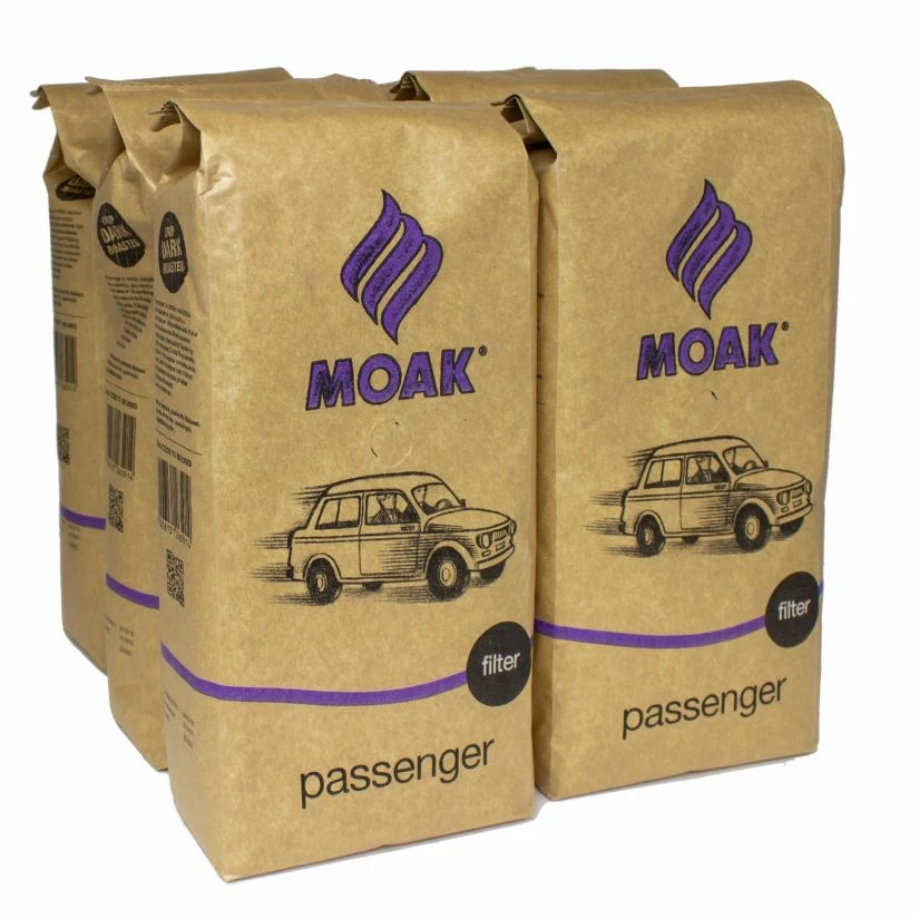 Moak Passenger offers friends of drip brew coffee a dark roasted coffee which is low in acidity and has a full-bodied feel.