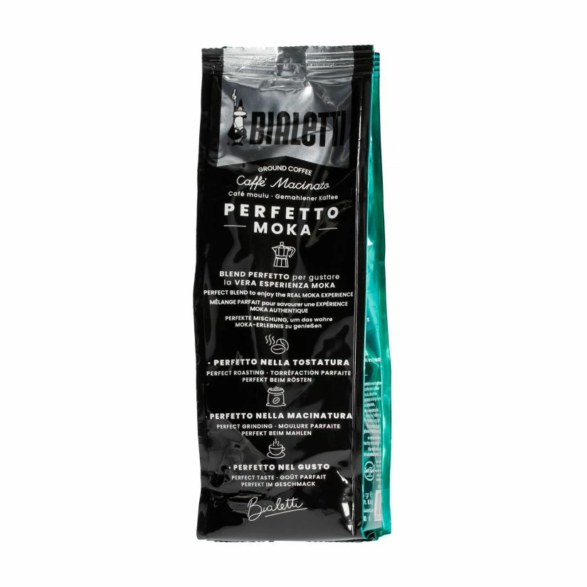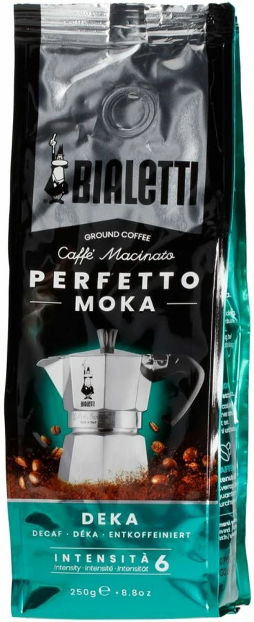 Bialetti Perfetto Moka Deka is an Italian decaffeinated dark roast ground espresso coffee. 40 % Arabica, 60 % Robusta, with the predominant bean from Brazil. The medium roast gives this coffee aromatic notes of cereals and toasted bread.