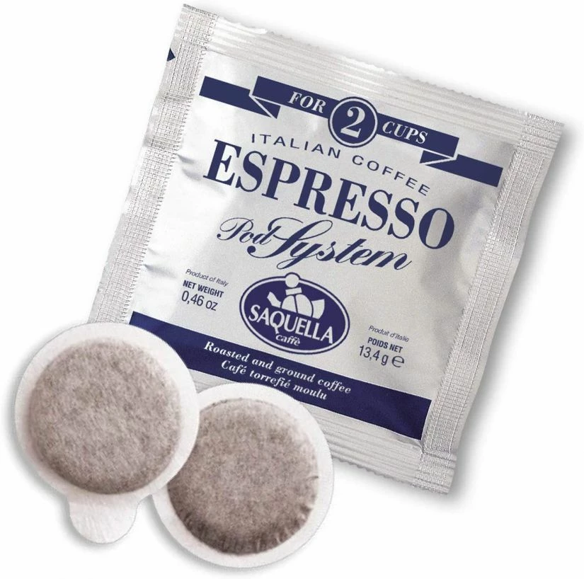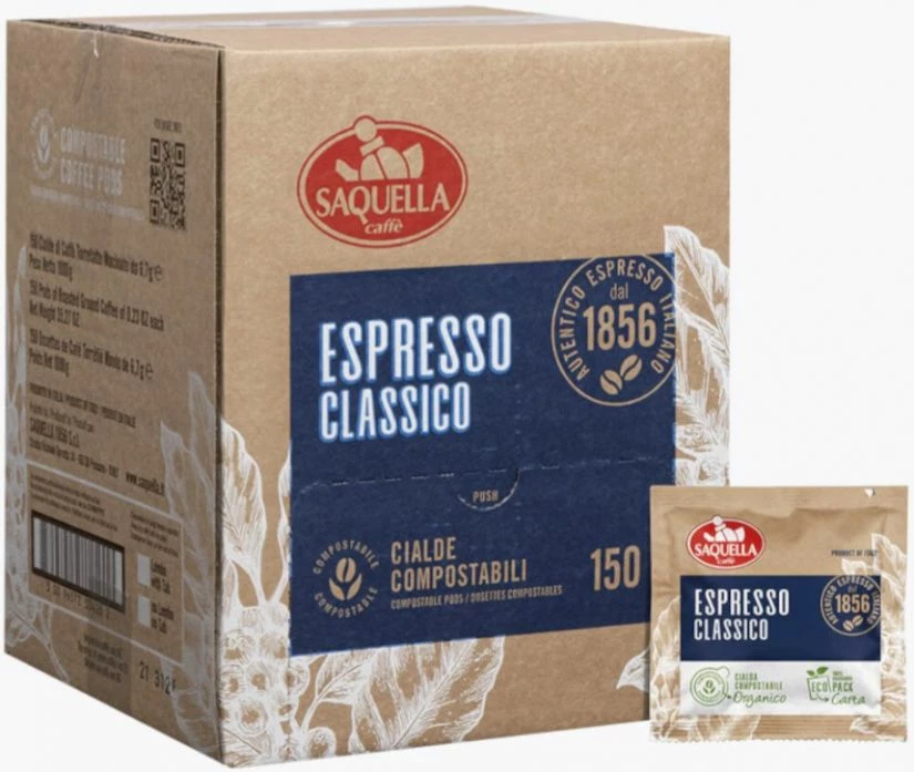 Saquella Classico E.S.E. espresso coffee pods – A creamy coffee with an intense taste and lasting aroma according to the Italian tradition of espresso coffee. Italian espresso with a rich and velvety body, an intense, sweet aroma and taste, rounded with chocolaty notes. The aftertaste is deep and satisfying.