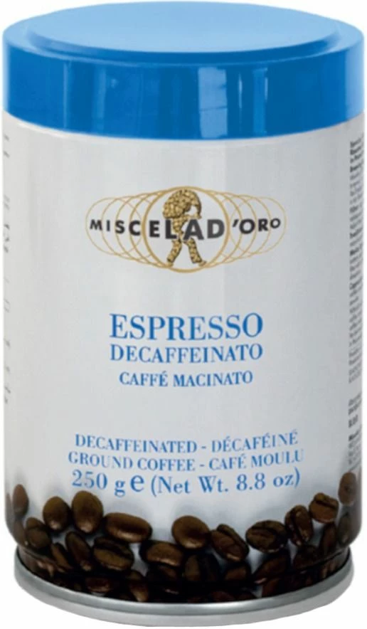 Miscela d’Oro decaffeinated espresso is a blend of full bodied Arabica coffees from South America and selected sweet Robusta from Asia. A delicate and aromatic medium roasted coffee with sweet, delicate and aromatic flavour.