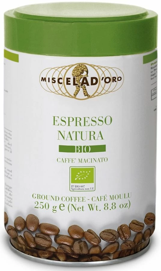 Miscela d’Oro Espresso Natura is a blend of high-quality Arabica (50 %) and Robusta (50 %) coffees. This dark roasted, full-bodied espresso coffee can be enjoyed on its own or in milk coffees. The Espresso Natura is a very smooth and full bodied espresso with the sweetness and the acidity in perfect balance. The long and pleasant aftertaste highlights the coffee experience. This coffee is great as an espresso but also excellent in milk coffees.