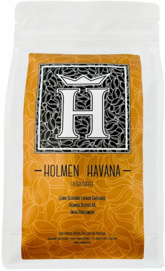 Holmen Havana is a darkly roasted coffee, with hints of spicy tobacco, nuts, dark chocolate and Smokey wood. It’s rich and dark flavor is strong, but with very little bite in the palate and leaves a long lasting and pleasant aftertaste of nutty chocolate.