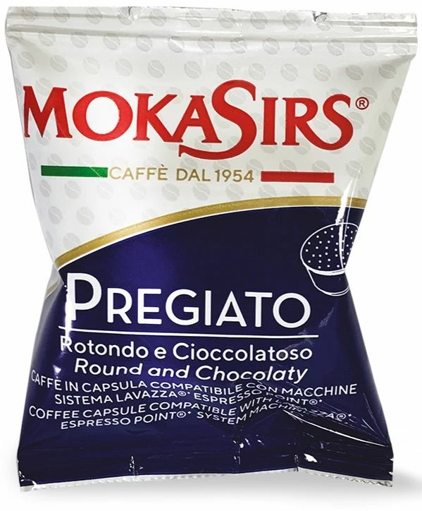MokaSirs Pregiato is a spicy blend of Arabica varieties from Brazil and Central America, as well as Indian Robusta. The amount of Robusta in the coffee blend is 30 %, which gives a nice depth and spiciness to the coffee.