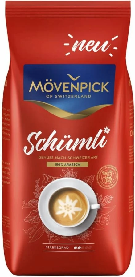 Mövenpick Schümli is a caffè crema coffee, ideal for your fully automatic coffee machine. It is a mild coffee due to specially selected slow roasted coffee beans.