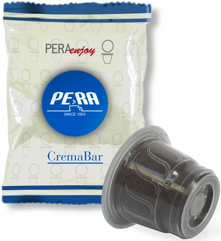 Pera CremaBar Nespresso compatible coffee capsules – a sweet and spicy espresso with bold character and strong personality. Ideal for lovers of full and rounded taste. Cup full of body and strong sensations, sweet, with lightly spiced notes.
