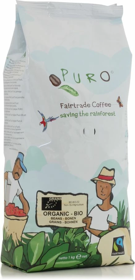 Puro coffees are certified by the Fair Trade Organisation. Fair Trade ensures coffee producers and workers a certain level of income and humane working conditions.